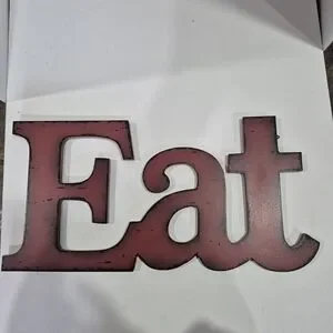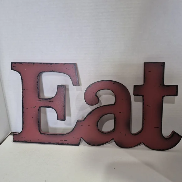 Charming rustic wall decor with 'Eat' in bold letters. Perfect for kitchen or dining area. Adds a warm touch to your space.
