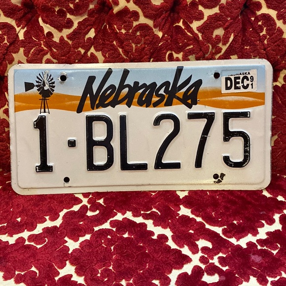 Rustic Retro Nebraska License Plate. It has wear and a few dents seen in photos but it adds to the rustic look. Great Wall Art!