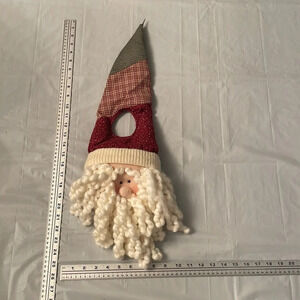 Add a touch of holiday magic to your home with this delightful rustic Santa Claus door knob hanging decoration. In classic red, green, and white, this charming piece brings the spirit of Christmas to your doorstep.