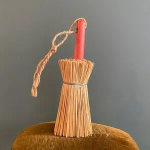 Charming rustic straw broom with a vibrant red handle. Perfect for decor. Supposedly you remove the straws to test your cake but please do not it is not sanitary at this point in time. Decoration only ❤️