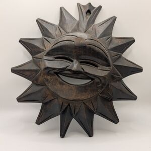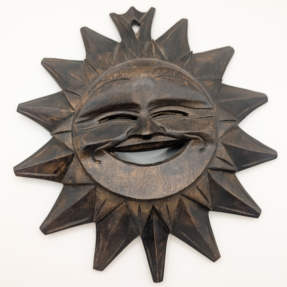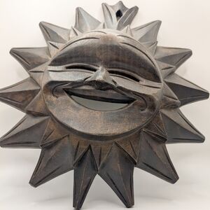 Charming rustic sun face wall decor. Perfect for adding warmth to any space.