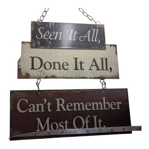 Add a touch of humor to your home or office with this rustic wall sign. Featuring a playful quote, it's perfect for any room. The sign's black and brown tones give it a classic look. Pictures are part of the description. Please review the photos.