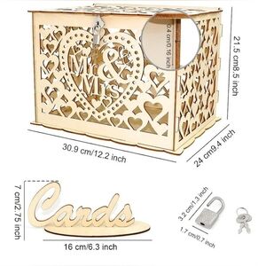 -*New and unopened* Wooden card box. Cut-out heart pattern and Mr. & Mrs. detailing. Comes with lock+key and "cards" sign. Assembly required. Would be a lovely addition to any wedding ceremony. Can be painted in wedding colours.