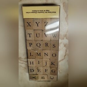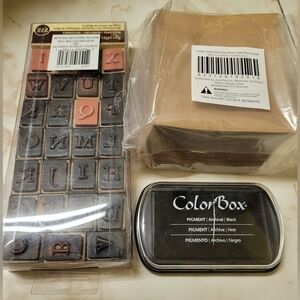 -Includes a stamp set with letters and numbers. Also a black ink pad and 150 rustic blank place cards.