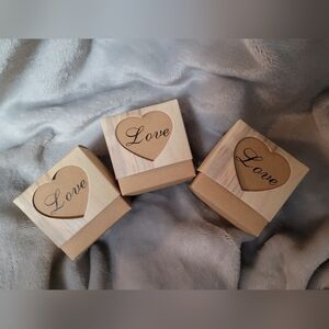 -Rustic wood-themed paper favour boxes with a heart cutout on the lid. Heart shape cutouts showcase the word 'Love'. Great for holding small favours like candy or chocolate. Includes 98 pre-assembled boxes, and twine.