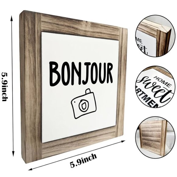 bonjour, office decor, home decor, wooden box, wooden plaque, pine wood, wood, wood decor, rustic
