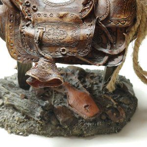 Rustic Western Theme Saddle Desk Clock Sz Small Breeze Quartz Works Great!