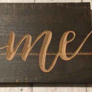 Perfect condition. Measures approx 5.5 x 15.5 inches. Dark distressed wood with engraving.