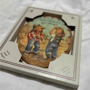Charming rustic wood plaque featuring a country kids design. Perfect for adding a touch of nostalgia to any space.