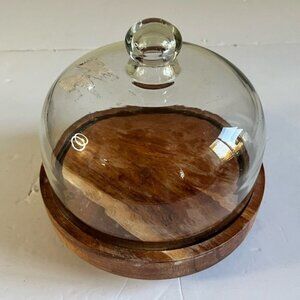 Rustic Wooden Base Cheese Board with Glass Dome Cover