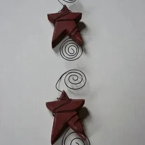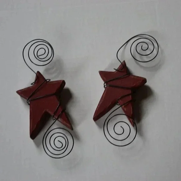 Pair of Rustic Wooden Stars with Metal swirl detail.