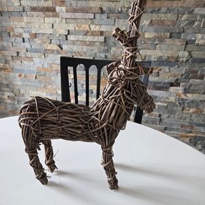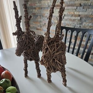 Charming rustic reindeer made from woven branches. Perfect for holiday decor.