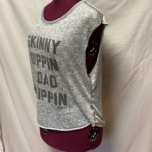 - Dark grey on light grey - Sleeveless - Scoop neckline - 65% polyester, 35% cotton