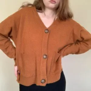 Rusty orange or Camdmim coloured cardigan. Brave soul brand, Size M very soft and so cute. No tags for the material, I assume cotton.