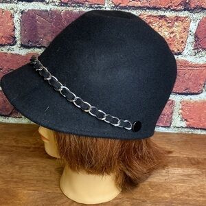 RW&CO Black Wool Cloche Hat with Chain Belt One Size