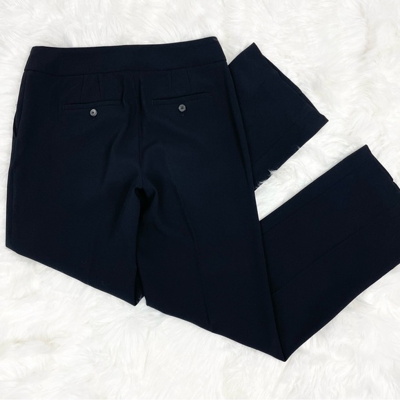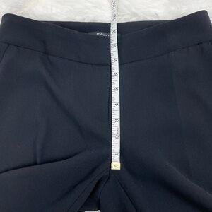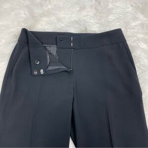 Black wide leg trousers by RW&CO. Lovely crepe fabric with a permanent crease down the front and back. The waist fastens with a zip fly and loop/hook closure for a clean polished appearance. Excellent condition, size 2.