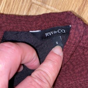 RW&CO Women’s Burgundy Solid Pleated Zippered Midi Dress Side Pockets (Size 6)