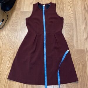 Rw&co Women’s Burgundy Solid Pleated Zippered Midi Dress Side Pockets (Size 6)