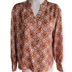 Ryegrass Orange Paisley Satin Poet Blouse Medium