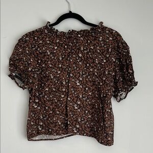Rylee + Cru Stella XS Brown and White Puff Sleeve Blouse