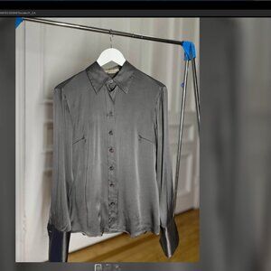 S 100% Silk Michael Kors MK shirt long sleeve, grey metal, shiny