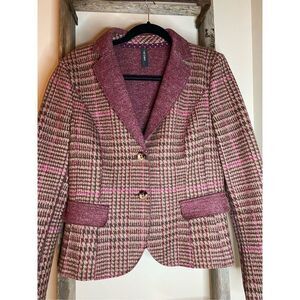 S 10/N4, Marc Cain, virgin wool herringbone blazer in pink & brown. Like new.