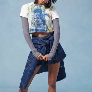 [S] Anna Sui & UO Cropped Tee CC Graphic Crop Top with Blue and Yellow Design