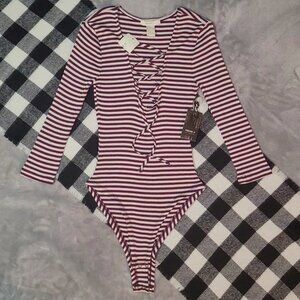 S | Forever 21 | Lace Up V-Neck Long Sleeved Bodysuit