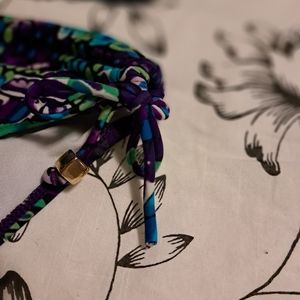 very cute bikini Excellent condition. tie around neck. back is tied and not adjustable. bottoms cinch and tie on either side. size S