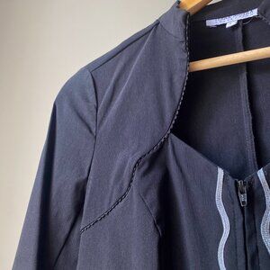 🍂 Y2K Vintage Goth Vamp Fitted Blazer with Structured Neckline and Silver Wavy Trim