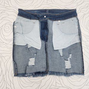 [S] Ripped Denim Wax Jeans Mini Skirt