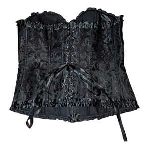 S - XL • Jacquard Lace Up Bustier Top Boned Overbust Corset • NWOT