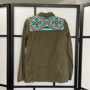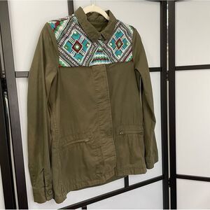 [S] Zara TRF Army Green Button-Down Multicolour Embroidered Beaded Jacket Women