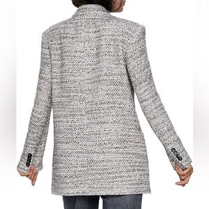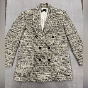 Stylish H&M tweed coat with a double-breasted design. Features a classic black and white pattern.