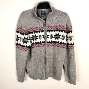 S2 Ralph Lauren Chaps Fair Isle Nordic Cabin Outdoor Hiking Zip Sweater L