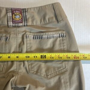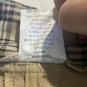 These riding breeches are in excellent condition. High stretch performance nylon/viscose/cool max and spandex fabric. Has belt loops and back pockets with plaid details. Standard length inseam with riding boot cuffs. Leather patches by the inner knees in excess condition as well. B62