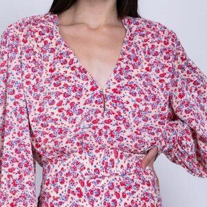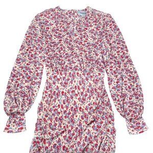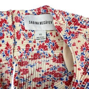 SABINA MUSAYEV Capella Print Pleated Knit Mini Dress XS Ivory Floral Multi Print
