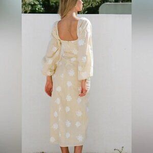 SABO Jean Maree Yellow White Cotton Gingham Floral Puff Sleeve Midi Maxi Dress