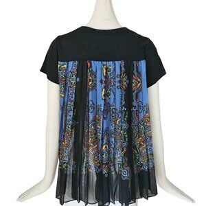 A signature tee from Sacai, linen blend front with pleated floral back. Front pocket.