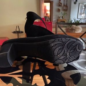 SIZE 9 BLACK SUEDE SACHA LONDON. 4 INCHES HEEL. TIES AROUND THE ANKLE. ANTISLIP SOLES. SUPER COMFY AND STEADY.