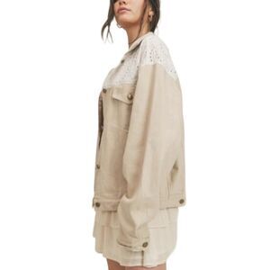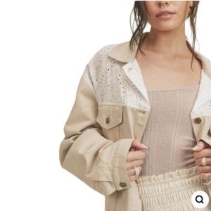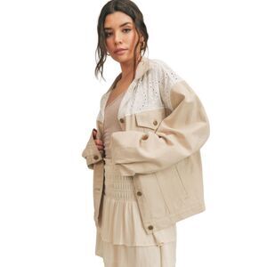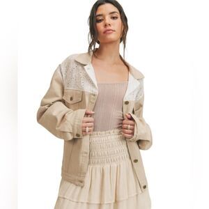 What does your summer outerwear collection need? The Mira! Featuring the CUTEST eyelet detail! The neutral tan colour will pair effortlessly with all your summer dresses & outfits!