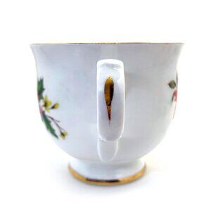 Celebrate the Holiday Season with this vintage Sadler Wellington teacup and saucer pair decorated in a floral pattern of poinsettias, holly and mistletoe, and trimmed in gold on the rims and handles. Teacup measures approx. 3" high x 3.5" wide (4.25" with handle); saucer measures 5.50" in diameter. Signed on bottom: Sadler Wellington Fine Bone China Made In England. EXCELLENT vintage condition; no chips, cracks or crazing.