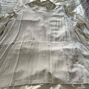 SAFARI BLOUSE, OYSTER, SIZE 24, RAYON, LONG ROLL-UP SLEEVES, MANDARIN COLLAR, MULTIPLE PKTS, DRAWSTRING WAIST, ADDITION ELLE, IN ORIGINAL BAG, TAG ON, NEVER WORN