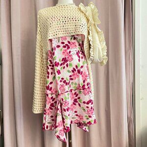 Pink and white floral midi skirt with ruffle hem and side zipper #fairycore #cottagecore