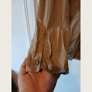 Shirt/jacket looks great and is lightweight. Has two side and two front pockets. Fabric shows some expected discoloration (it's meant to fade) see last picture.