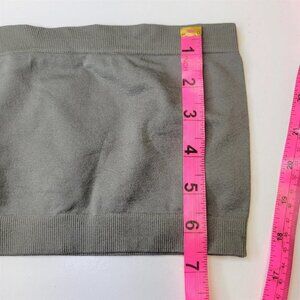Strapless Tube Top in a hue of greyish sage green or greyish taupe
