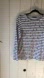 White and blue striped long sleeve top with colorful sailboat pattern.