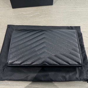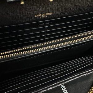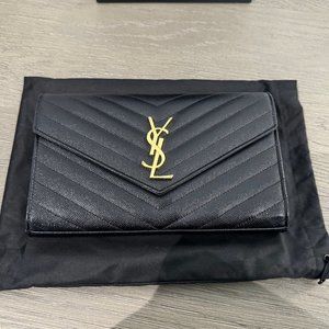 SAINT LAURENT Black Monogramme Envelope Chain Wallet Bag