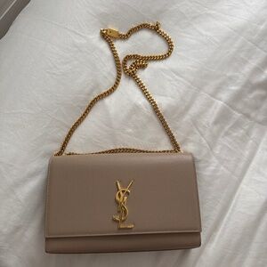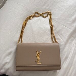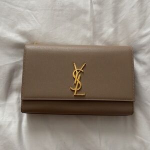 SAINT LAURENT Grain De Poudre Medium Monogram Kate Satchel Dark Beige