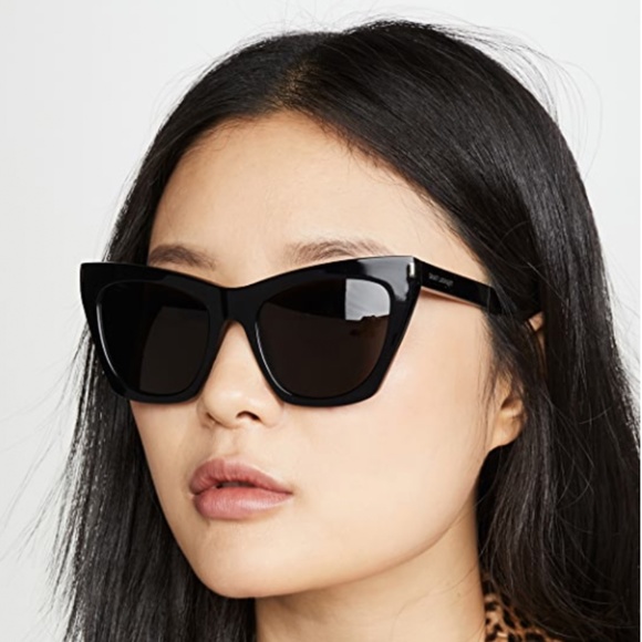 Saint Laurent's Kate sunglasses have been crafted from glossy acetate in a sleek cat-eye design for contemporary appeal. The classic black colourway is complemented by silver-tone hardware and smokey lenses, while the label's name has been engraved at the temples for signature finish. Make yours a go-to accessory for days in the city.